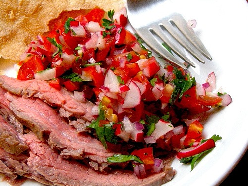 2. With sharp knife, lightly score both sides of flank steak in a crisscross pattern. Place steak in marinade in dish, turning to coat. Cover with plastic wrap and marinate in refrigerator 30 minutes, turning once.