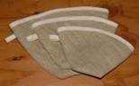 I use no paper products if I can help it; dish cloths and rags for the kitchen, baby wash cloths for the bathroom that get laundered, recycled toilet paper for guests (see No-Impact Man’s Blog entry on this).