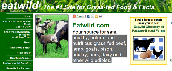Posted: December 29, 2011 Filed under: Food and it's Impact on Our Health Leave a commentEatWild.com is a site that let’s you search by state for sources of healthy, natural and nutritious grass-fed beef, lamb, goats, bison, poultry, pork, dairy and other wild edibles.