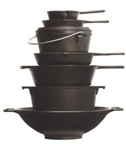 The technology for making cast-iron cookware has come a long way in the last 100 years, but each piece is still cast in sand moulds. Yes, sand. This method goes back to the Chinese. At Lodge, the biggest cast iron company in the United States, the iron/steel mixture is melted with electro-magnetic heat to 2,500°F. The pouring of the molten metal into the sand moulds has been automated. It’s this automation that has made Lodge the industry leader–and survivor. They were also the first, and only, cast-iron company to offer a pre-seasoned pan. This means the pan is ready to go when you buy it.
