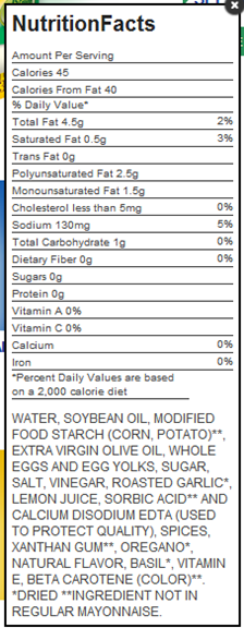 Notice, on the left, the ingredients and lack of ANY nutrients! Toxic soy oil, modified food starch, sugar, natural flavors (a toxic mess of ingredients not required by the FDA to be disclosed)…and it has NO FLAVOR!