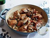 5) Return liquid to pot and bring to boil. Simmer briskly, stirring occasionally, until sauce is thickened to consistency of heavy cream, 4 to 6 minutes. Return chicken to pot along with any accumulated juices, cover, and cook until just heated through, 5 to 8 minutes. Season with salt and pepper to taste, and serve.