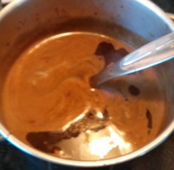 5)  Pour in the vinegar mixture and scrape up any bits on the bottom of the pan. Bring to a full simmer; then remove from the heat and let cool completely.