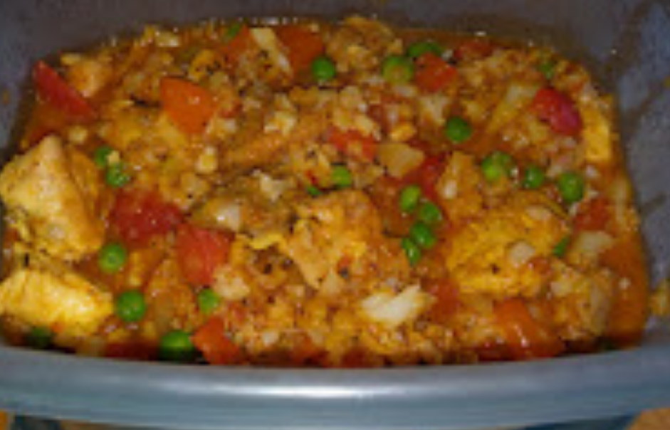 4. Remove lid and fold in peas and remaining 1 cup of cauliflower rice. Place frozen tilapia filets on top of the paella mixture, cover and steam for another 10 minutes. Remove lid and check for doneness. You might also like