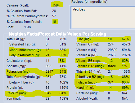 I Googled what a vegetarian should eat daily to meet their nutrient needs; This menu below was very typical of what I found. I have also seen MANY vegetarian clients daily food diaries along the way.