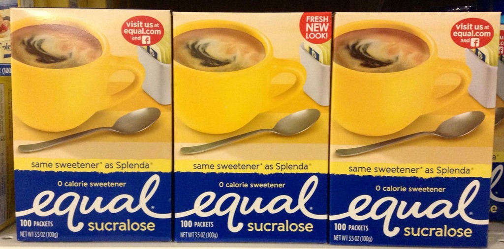 Sucralose goes by the brand name Splenda. Other popular artificial sweeteners, such as Equal (pictured), contain aspartame.Mike Mozart