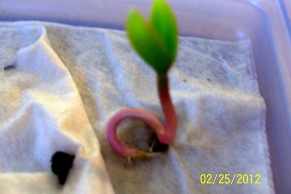 Posted: February 26, 2012 Filed under: Gardening Leave a commentThe cold got my Malabar spinach, but not 3 weeks ago I had put the berries I had gotten off of it in between wet paper towels. They didn’t sprout for a week or two so I sat them on top of the grow lights. Frankly, I forgot about them.