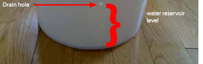 3) Get the lid just right and then let’s work on the bucket. Check where the bucket lid comes to and drill a small hole at that point on the side of the bucket. This is where the water will drain when you water the plant.
