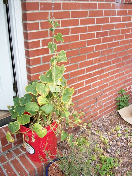 When choosing a container, take into consideration the mature size of the vegetable plant. Hanging baskets along the eaves of the sunny side of your house can work, too. Creative containers such as the Topsy Turvy hanging tomato planter is also a good option.