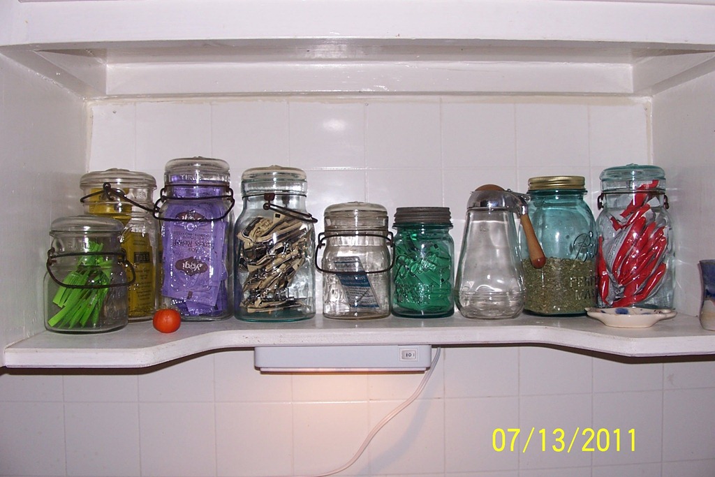 Posted: July 15, 2011 Filed under: Gardening Leave a commentI found these beautiful old canning jars in a neighbors trash and could not believe my good luck! I had actually stopped because they had sat an old desk out by the road. I have been looking for one to use as a base for a potting bench I want to build but alas, it was particle board but there was a box of 12 beautiful jars..