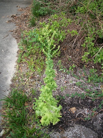 then I learned about over-wintering seeds.. makes ‘em hardier…and they know just when to sprout out.. Amazing…Anyway, that’s it above…I haven’t eaten any yet… I just want it to go to seed… It’s cool to watch how it grows…I have never given a thought to lettuce having flowers…I can’t wait to see ‘em.