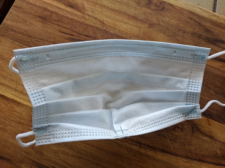 We finally were able to get really well made masks on Etsy and I have tweaked each one to my specifications. But as this goes on longer my masks started to show wear. I had to find an answer to those quick trips like getting gas or a quick run to the health food store. I use my masks ONLY ONCE so I ordered a pack of triple layer white cotton ear-looped masks from Amazon. I got a pack of 50. I added a dart to each side to make them fit better and ordered these three products from Amazon;
