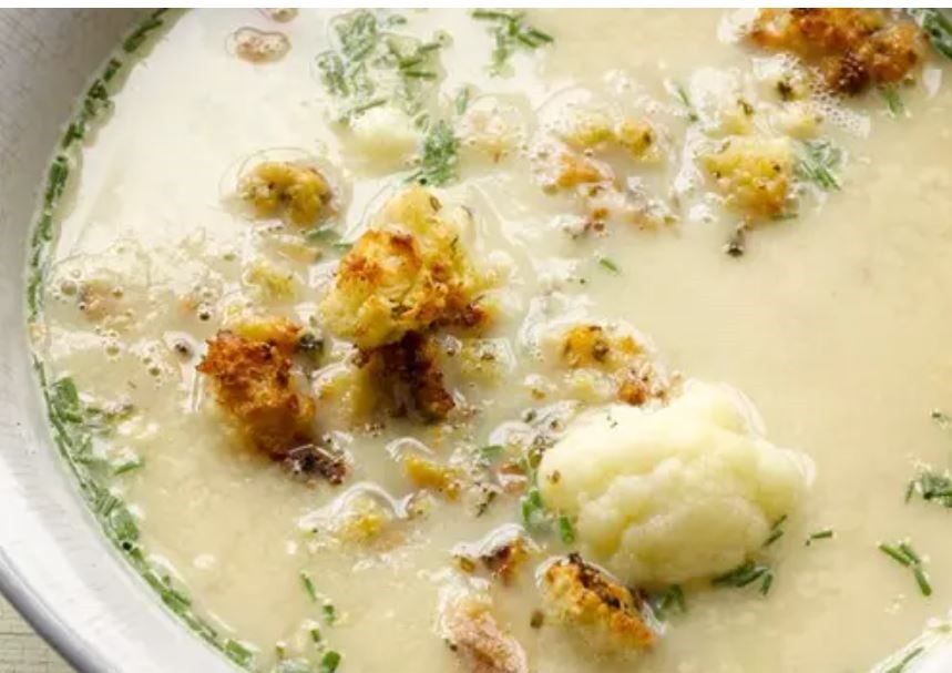 Creamy Cauliflower Soup with Dijon-Garlic Croutons