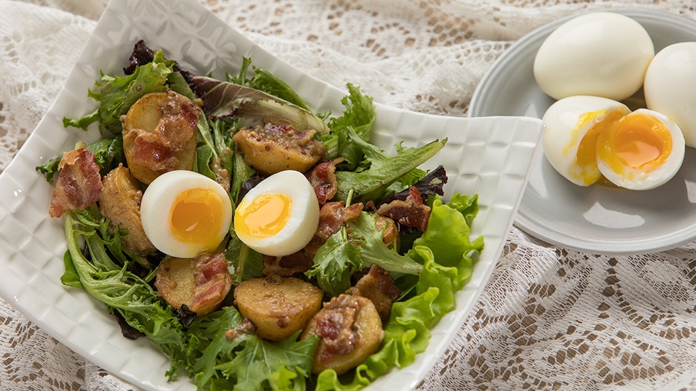Summer Greens with Mustardy Potatoes and Six-Minute Egg