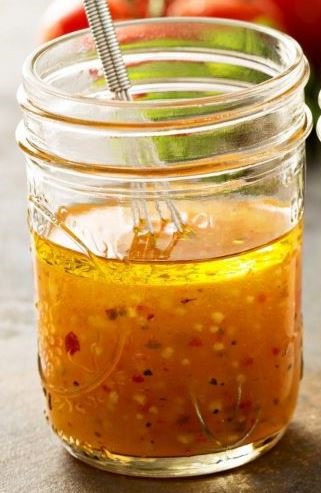 Combine the olive oil, vinegar, mustard, salt, and pepper in a jar with a tight-fitting lid. Shake well to combine.