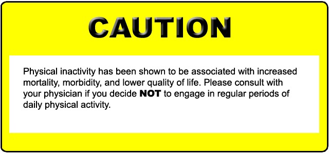 Rather than put up warnings about exercise, he said, why not put up a new cautionary statement: “Physical inactivity has been shown to be associated with increased mortality, morbidity, and lower quality of life. Please consult with your physician if you decide not to engage in regular periods of daily physical activity.”