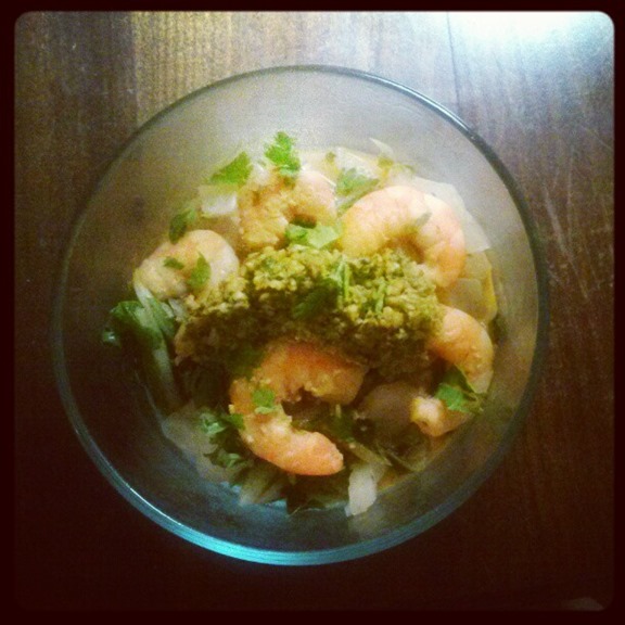 Thai Shrimp Salad with Asian Greens and Cilantro Pesto